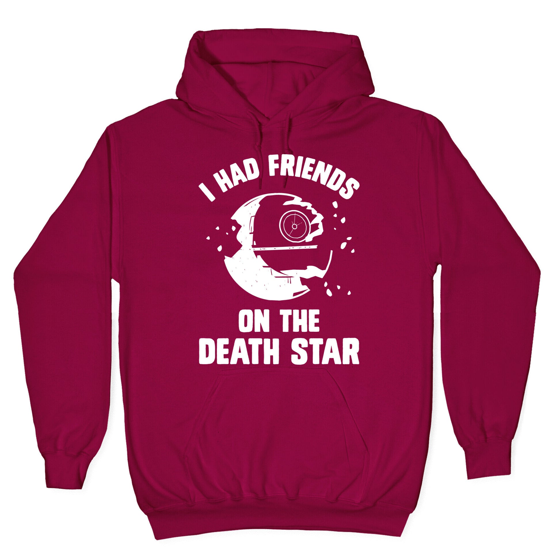 We all know what a tragedy it was the Death Star exploded, but we tend to forget that there were people on the spaceship. Many lives were lost and a lot of people were and still are sad. So don't forget that we had friends on that space ship that exploded and loved ones were lost, wear this design in remembrance of those people! Remember the lost with this "I Had Friends On The Death Star" shirt Our Unisex Pullover Hoodie is made from a soft 8-ounce fabric They feature a drawstring hood and front kangaroo pocket. Great for layering! Preshrunk for your convenience! Printed in the USA. Made with 50% Cotton and 50% Polyester.