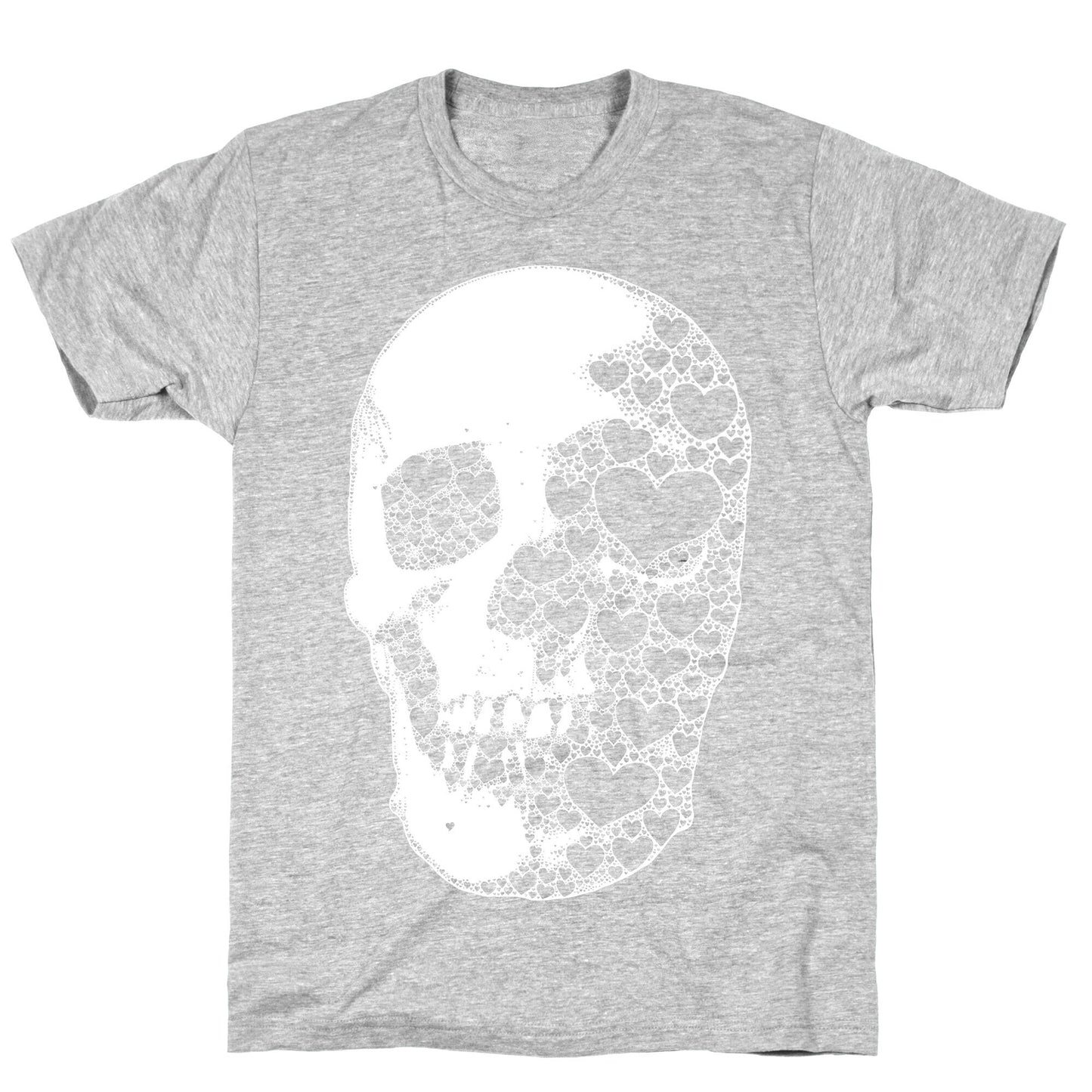This stylish shirt features a skull composed entirely of hearts and is perfect for lovers of fashion, style, illustration, anatomy, macabre imagery, design, and love. Our fitted Unisex Cotton tee is made from an exceedingly soft 100% ring spun cotton. It features a crew neckline with hemmed sleeves and bottom for durability. Preshrunk for your convenience! Printed in the USA. Made with 100% Ring Spun Cotton. Athletic Gray is made up of 90% cotton and 10% polyester. Other heathered colors are made of 52% cotton and 48% polyester.