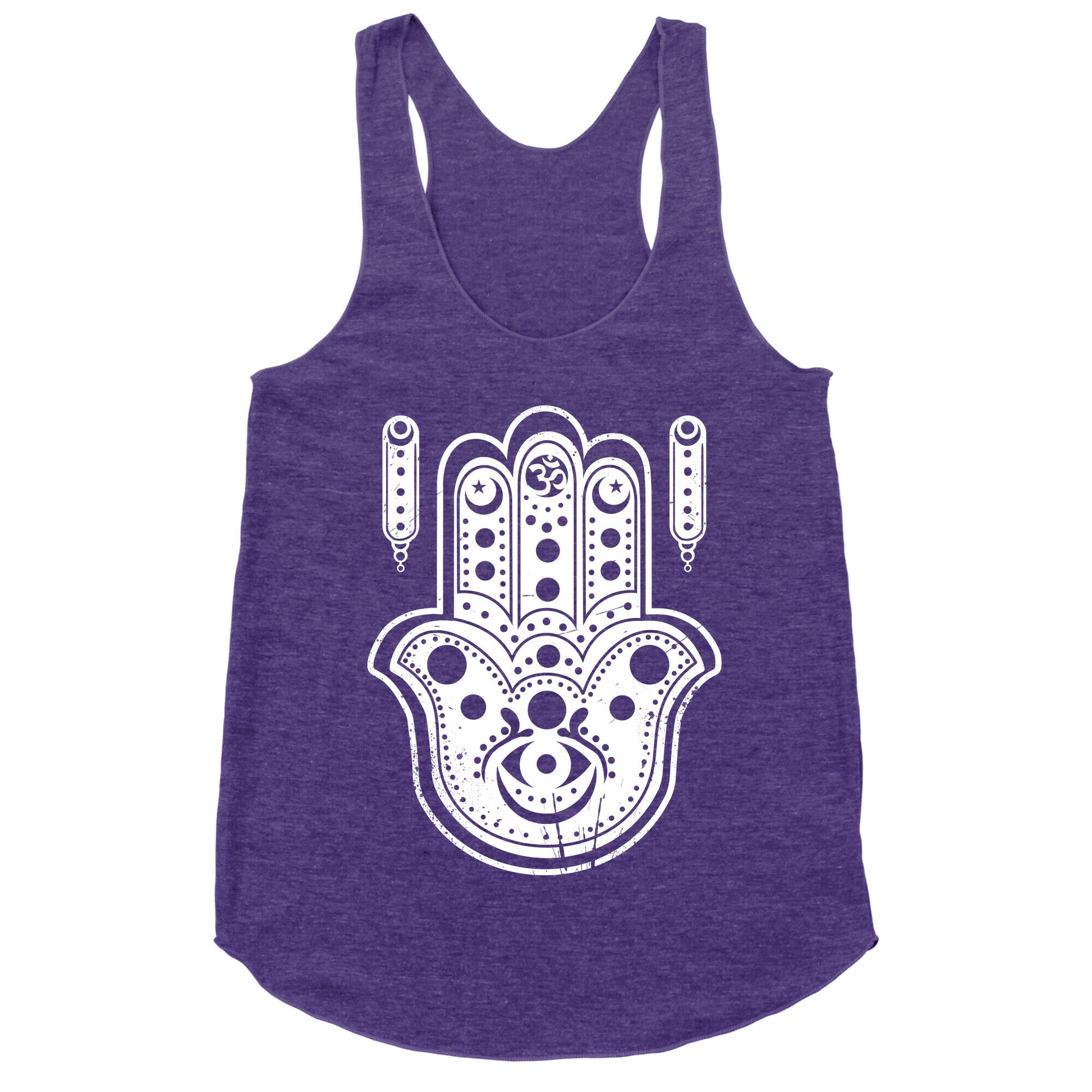 For those spiritual Yogis that want to bring the zen of yoga class there is this hamsa shirt with the hamsa hand and om symbol perfect for keeping you zen wherever you go.Our super comfortable Women’s Raw Edge Racerback features a soft tri-blend, unhemmed fabric, with a fashionable bell-like shape for the bottom. Preshrunk for your convenience! Printed in the USA. Made with 50% Polyester 25% Ring Spun Cotton, and 25% Rayon.