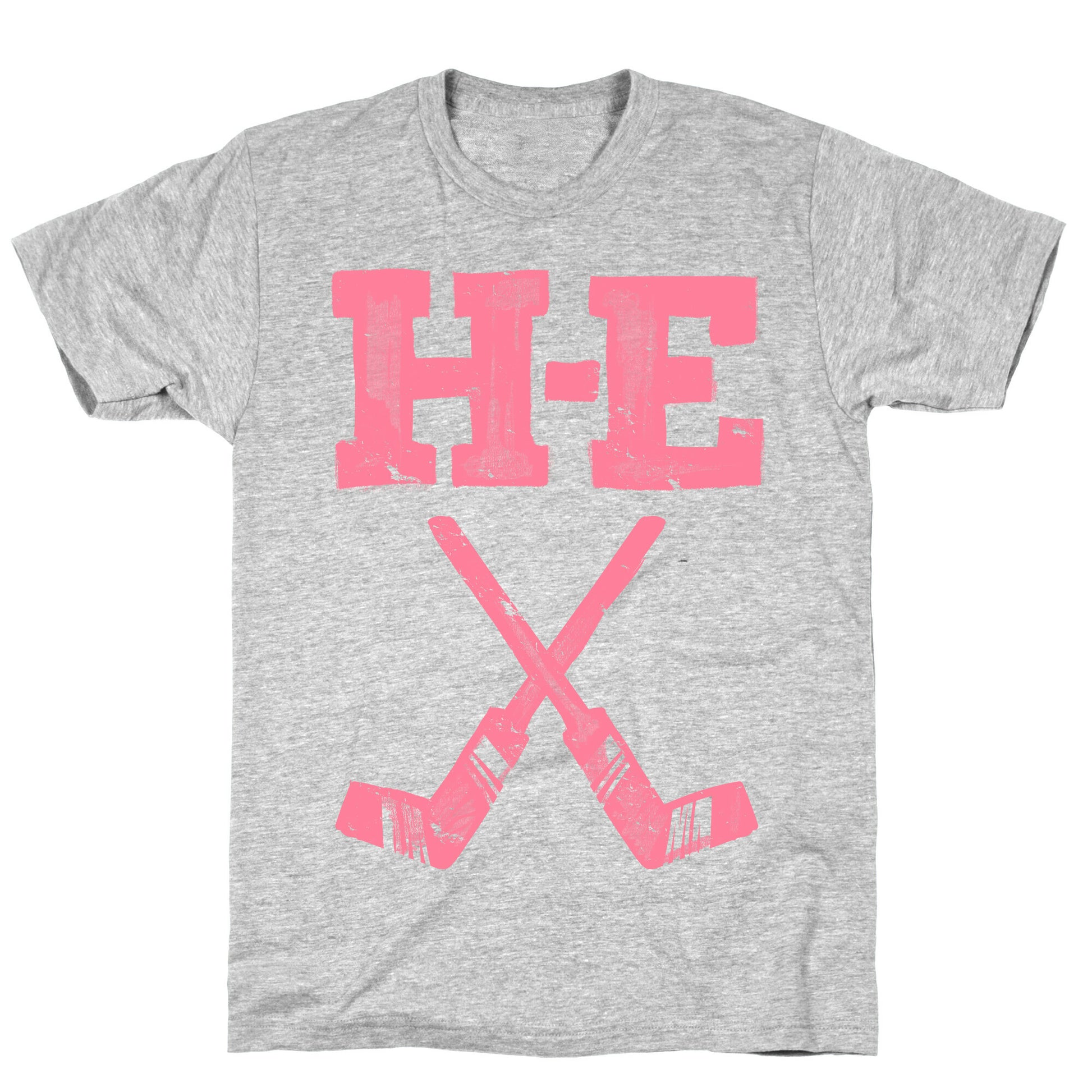 Show your love of hockey season with this funny aggressive hockey shirt that references H E Double Hockey Sticks, which "secretly" spells out hell. This hockey t shirt Perfect for cheeky hockey fans, puck bunnys, hockey hunks, and hockey players looking to spice up their practice hockey gear with a long running hockey joke. Our fitted Unisex Cotton tee is made from an exceedingly soft 100% ring spun cotton. It features a crew neckline with hemmed sleeves and bottom for durability. Preshrunk for your convenience! Printed in the USA. Made with 100% Ring Spun Cotton. Athletic Gray is made up of 90% cotton and 10% polyester. Other heathered colors are made of 52% cotton and 48% polyester.