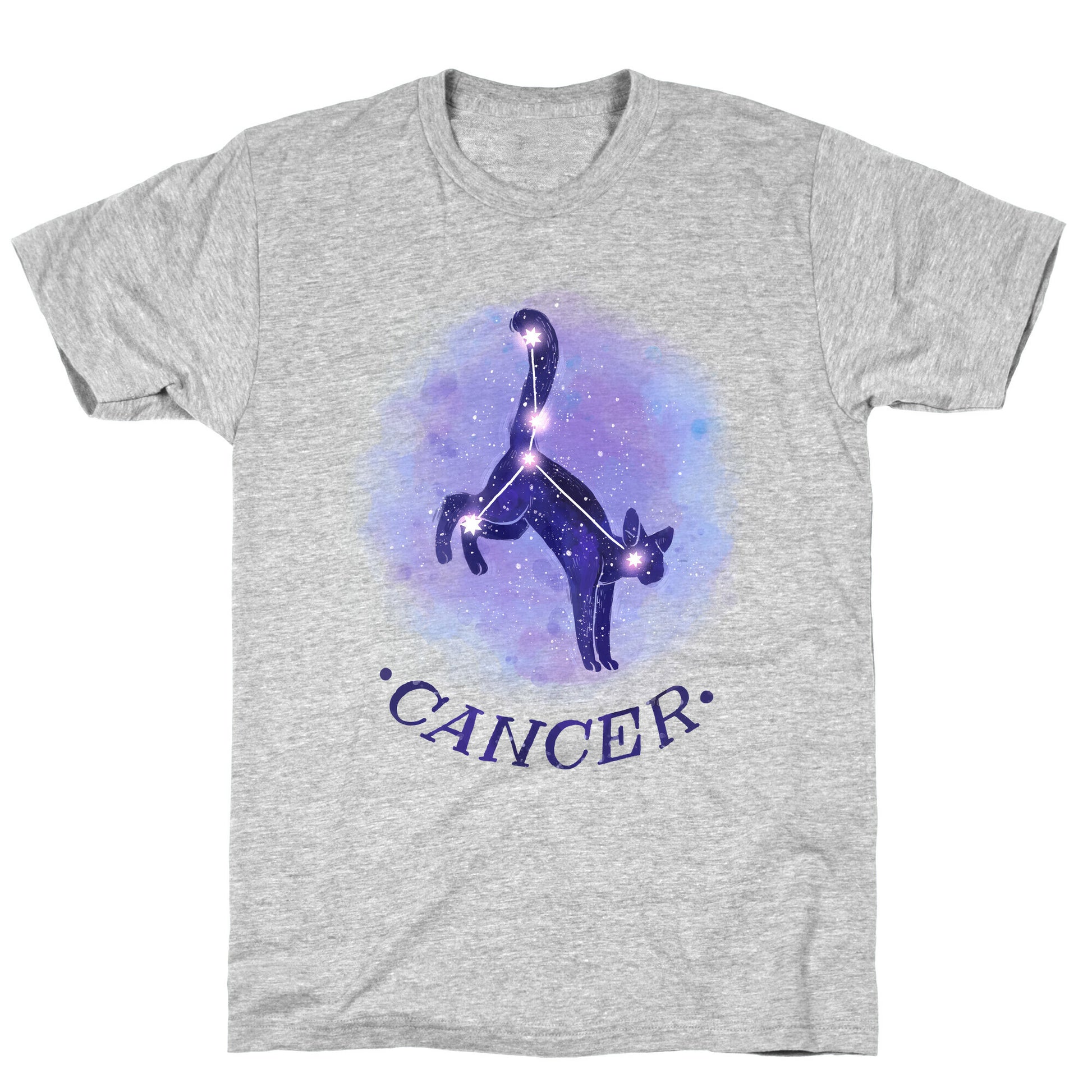 When you're a Cancer, the most important things in life are loyalty, dependability, and adaptability, though you may tend to be a little moody at times. If you love zodiac mythology, are a horoscope addict, or just think cats are the greatest thing ever, this stylish zodiac sign cat shirt is sure to please--complete with a beautiful watercolor galaxy pattern! Show off your inner strength and outer cat lover (and outer space lover). Our fitted Unisex Cotton tee is made from an exceedingly soft 100% ring spun cotton. It features a crew neckline with hemmed sleeves and bottom for durability. Preshrunk for your convenience! Printed in the USA. Made with 100% Ring Spun Cotton. Athletic Gray is made up of 90% cotton and 10% polyester. Other heathered colors are made of 52% cotton and 48% polyester.