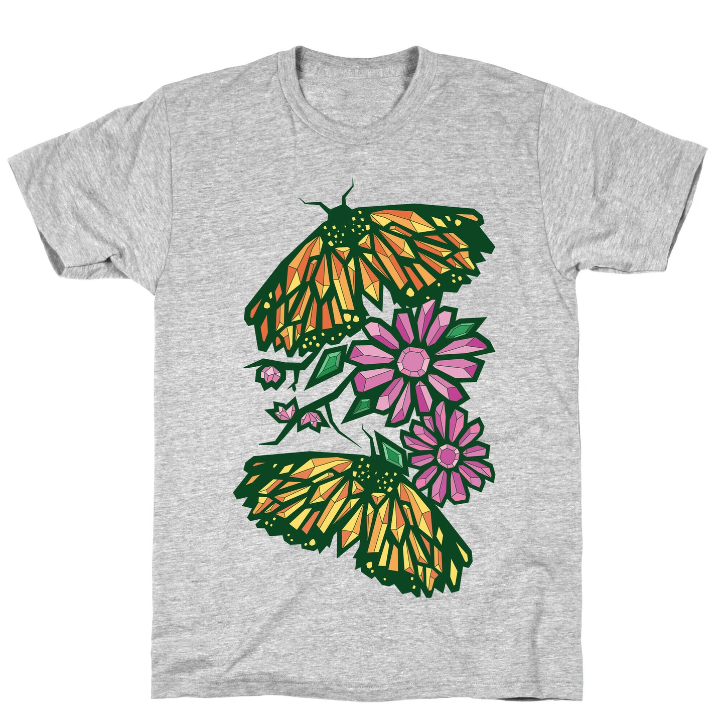 Springtime is the time to bring new life, to blossom and bloom! Capture the rejuvenating feeling of spring with this butterfly and blossom crystals shirt! Perfect to breathe new life into your style! Our fitted Unisex Cotton tee is made from an exceedingly soft 100% ring spun cotton. It features a crew neckline with hemmed sleeves and bottom for durability. Preshrunk for your convenience! Printed in the USA. Made with 100% Ring Spun Cotton. Athletic Gray is made up of 90% cotton and 10% polyester. Other heathered colors are made of 52% cotton and 48% polyester.