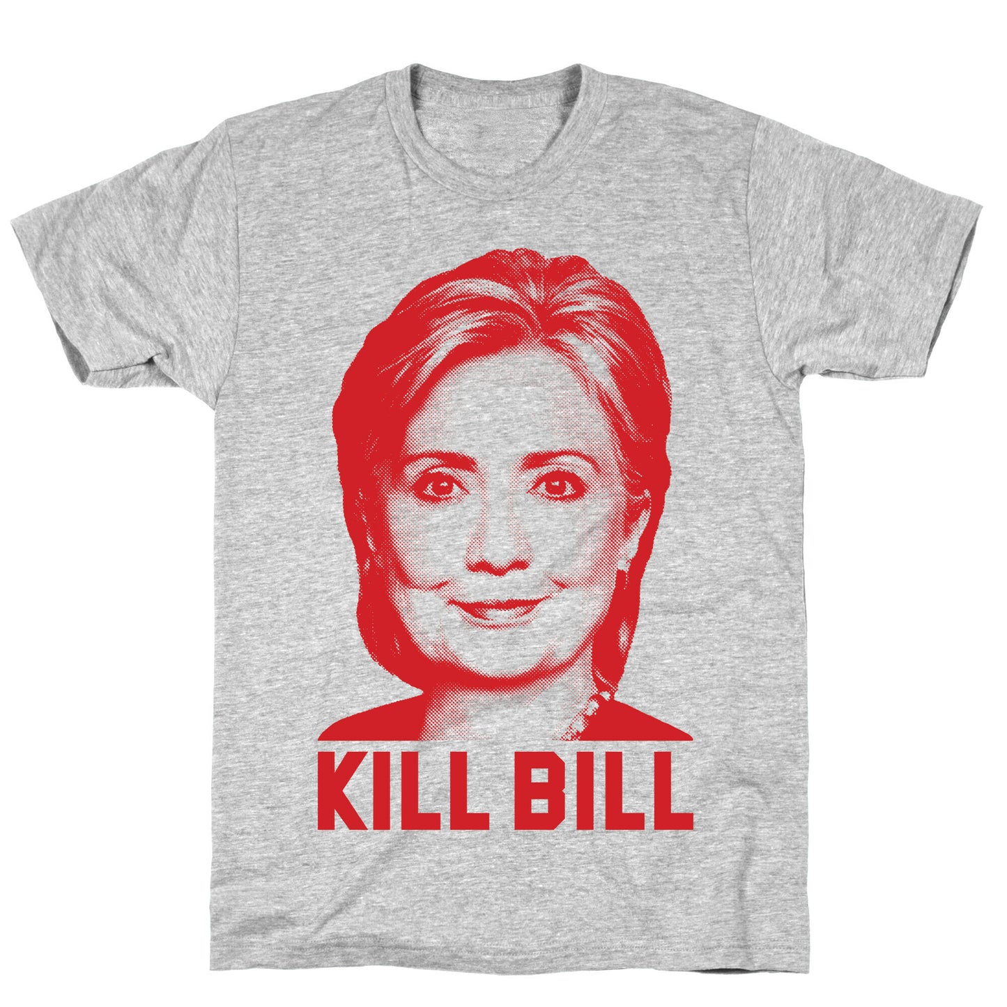 This funny Hillary Clinton design features the former First Lady, Senator, and current Secretary of State Hillary Rodham Clinton and the words "kill Bill" and is perfect for fans of Hillary Clinton, people who want her for president in 2016, Democrats, political nerds, progressives, feminists, political science majors, and is perfect for campaign rallies, college, university, class, working out, or showing your love for Hillary Clinton anywhere you go! Our fitted Unisex Cotton tee is made from an exceedingly soft 100% ring spun cotton. It features a crew neckline with hemmed sleeves and bottom for durability. Preshrunk for your convenience! Printed in the USA. Made with 100% Ring Spun Cotton. Athletic Gray is made up of 90% cotton and 10% polyester. Other heathered colors are made of 52% cotton and 48% polyester.