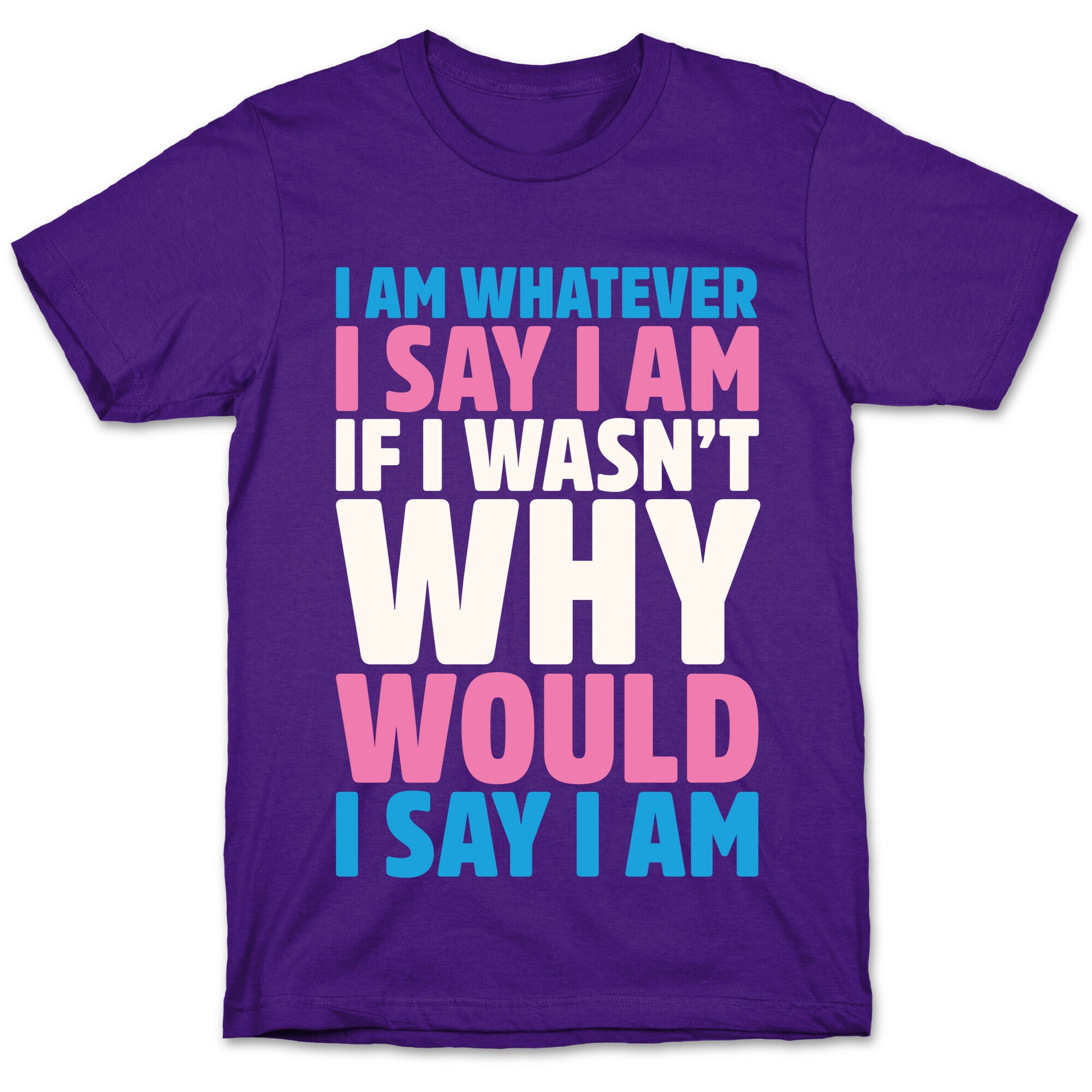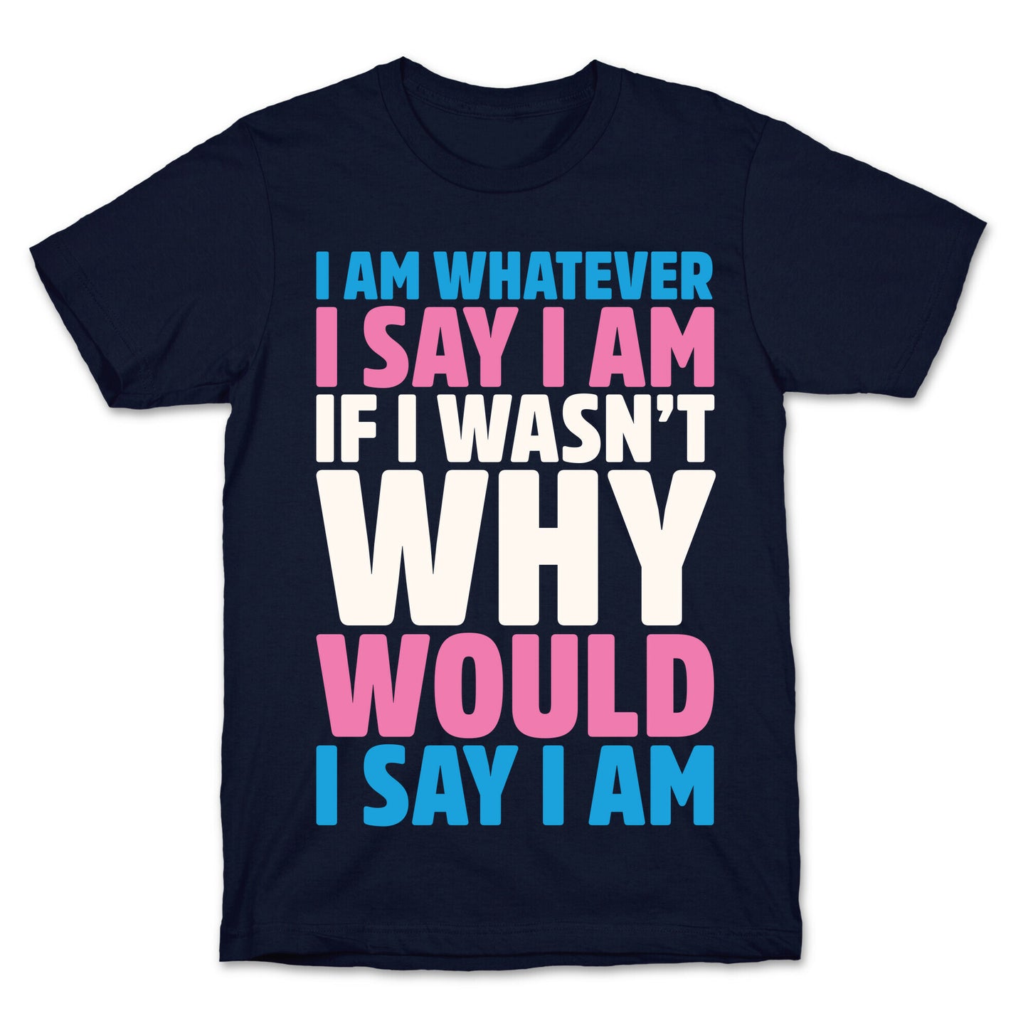 Rise up and make a statement with this bold and unapologetic t-shirt. The "I Am Whatever I Say I Am" tee is a powerful declaration of self-identity and resilience, designed to empower members of the LGBTQ community and allies alike. Whether you're hoping to raise awareness about transgender issues or simply want to celebrate your own individuality, this tee is the perfect way to do it. The witty slogan is both humorous and thought-provoking, reminding everyone that no one has the right to define who we are but ourselves. The design is simple yet striking, making it easy to pair with any outfit and wear on any occasion. Show your support for equality and solidarity and grab this absolute must-have t-shirt today! With its bold message and stylish design, you'll be turning heads and changing minds in no time! Our fitted Unisex Cotton tee is made from an exceedingly soft 100% ring spun cotton. It features a crew neckline with hemmed sleeves and bottom for durability. Preshrunk for your convenience! Printed in the USA. Made with 100% Ring Spun Cotton. Athletic Gray is made up of 90% cotton and 10% polyester. Other heathered colors are made of 52% cotton and 48% polyester.