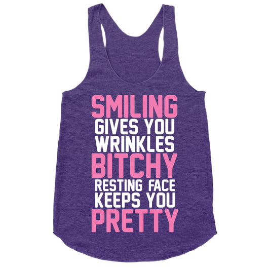 Smiling Gives You Wrinkles But Bitchy Resting Faces Keeps You Pretty Racerback Tank